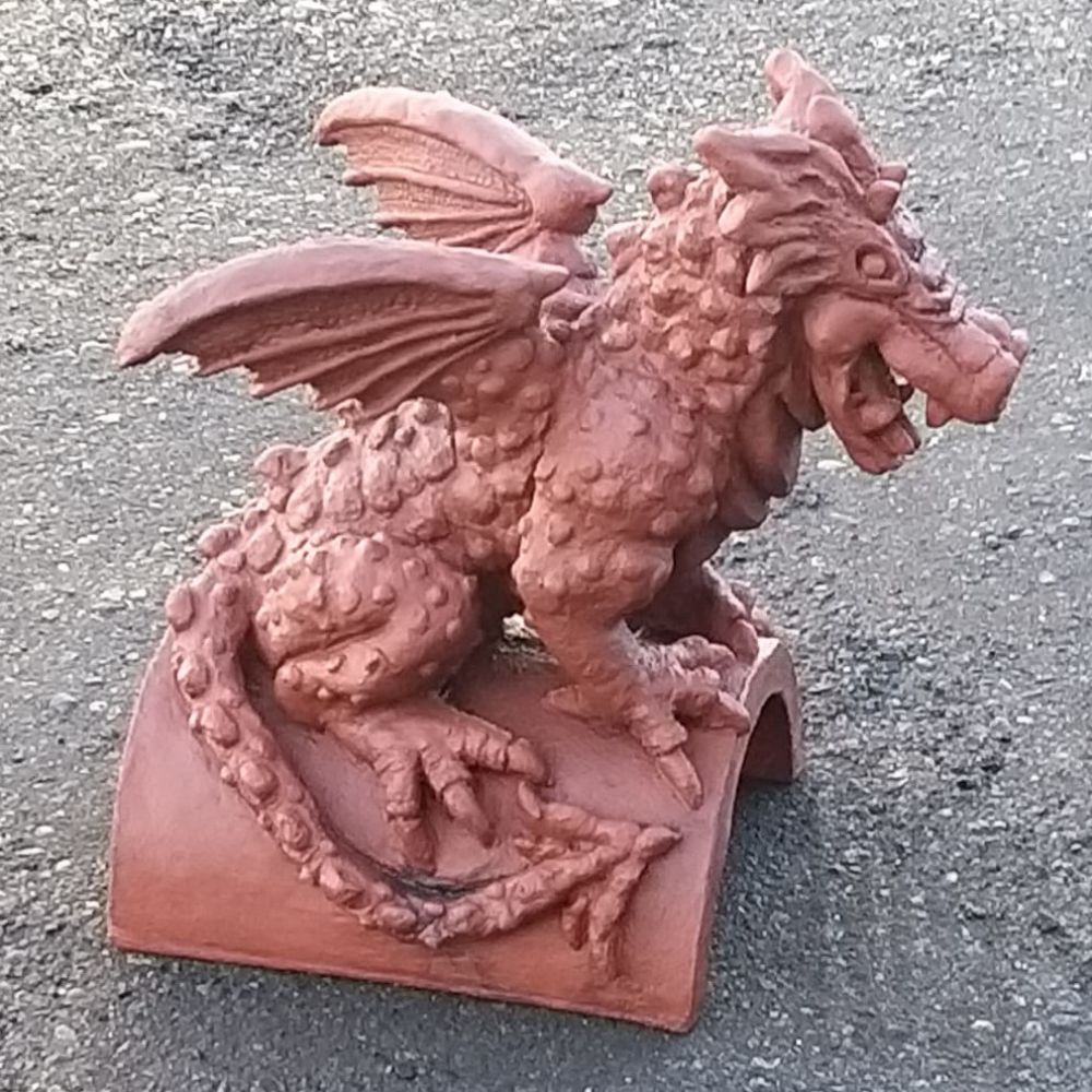 The Eredon dragon is a beautifully crafted dragon finial designed to make a dramatic statement along the roof ridge. With a half round ridge design and its proud upright pose and expressive open mouth, this dragon brings a sense of strength and mythic character to the skyline, making it a true focal point when viewed from the ground.